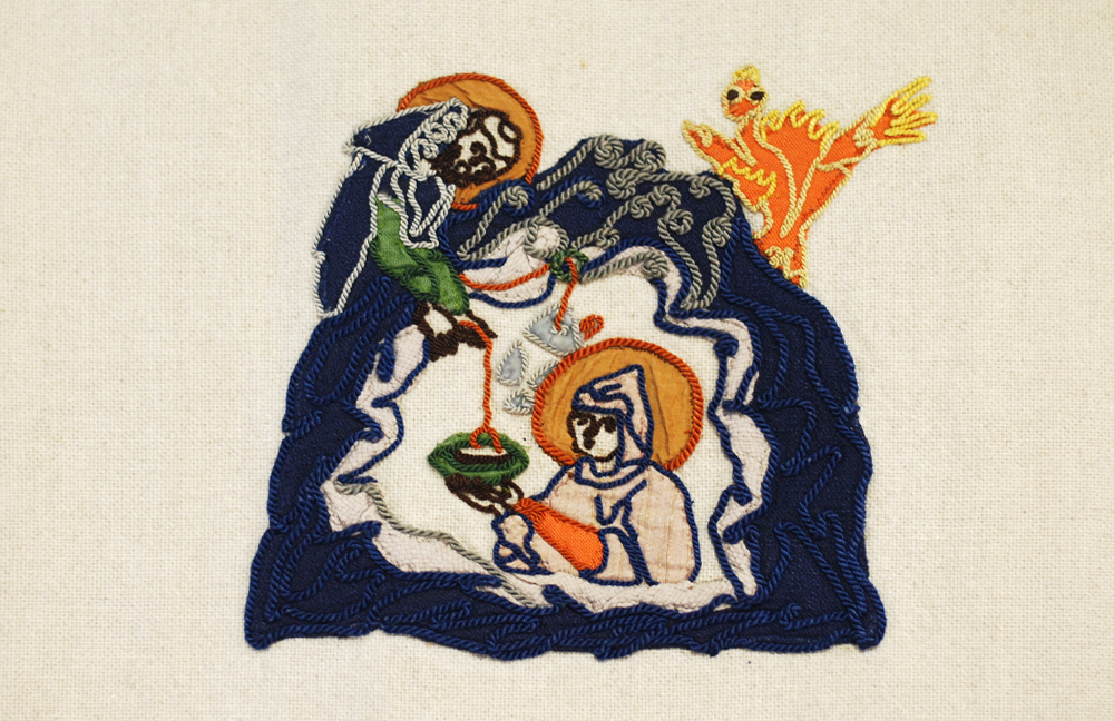 with tapestry images made by our Sr. Liobgitha Weis, OSB